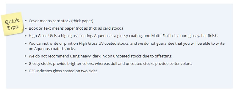 - Please note that due to the fact that we print in large volumes, different paper types may have different quantity options